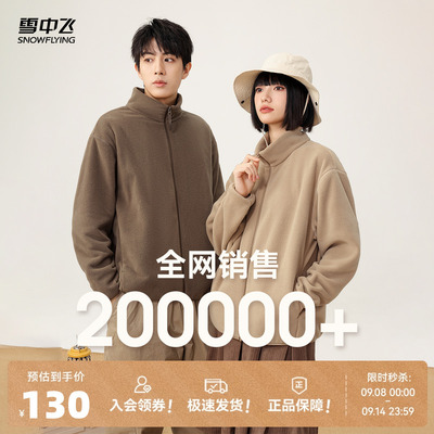 【热销】雪中飞秋季新男女情侣运动摇粒立领外套户外休闲大码黑色