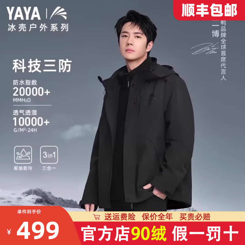 王一博同款鸭鸭户外三合一羽绒服男可拆冲锋外套女防水登山衣服