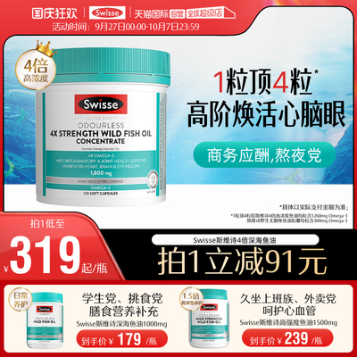 【自营】Swisse斯维诗4倍鱼油高浓度omega3正品成人dha护心脑眼