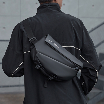 单肩斜挎包男款大容量潮摩托车胸包单肩包磁吸扣背包男士骑行跨包