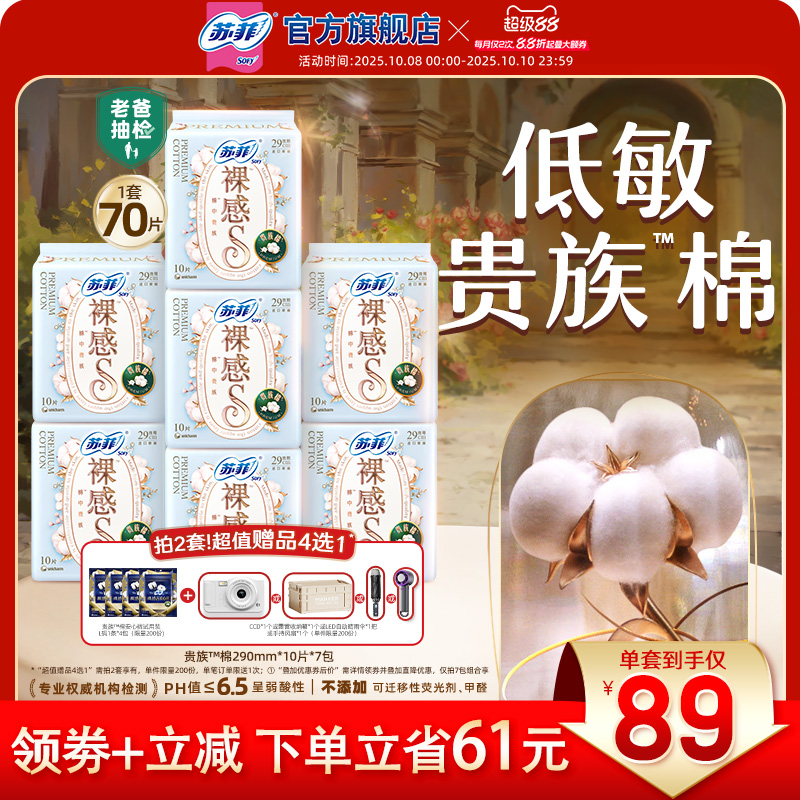苏菲卫生巾裸感S贵族?棉纯棉敏感肌日夜用正品