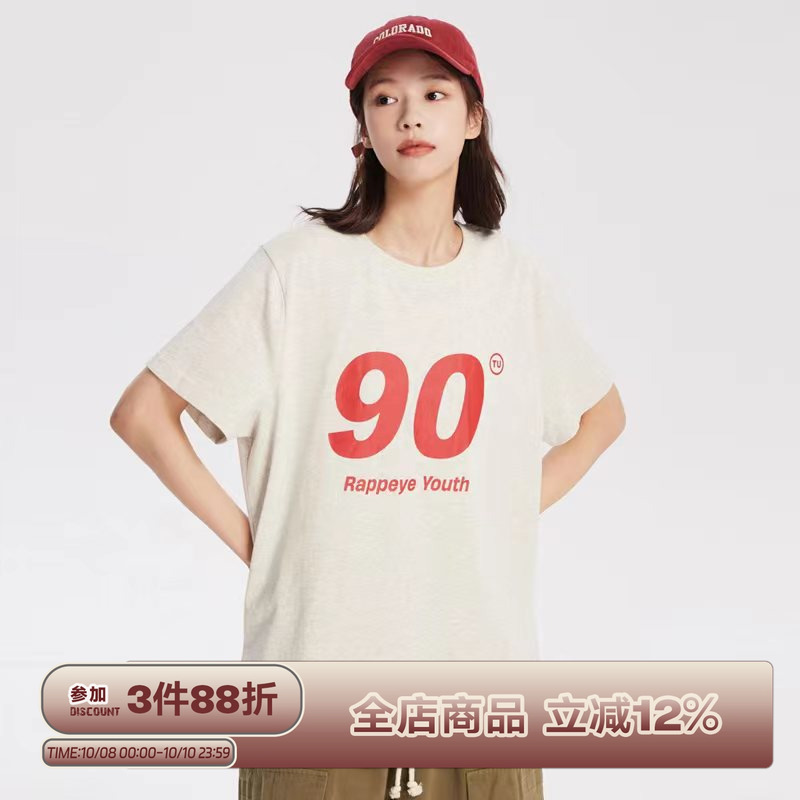RAPPEYE美式休闲男女宽松潮牌情侣夏季新款正肩基础款90短袖T恤