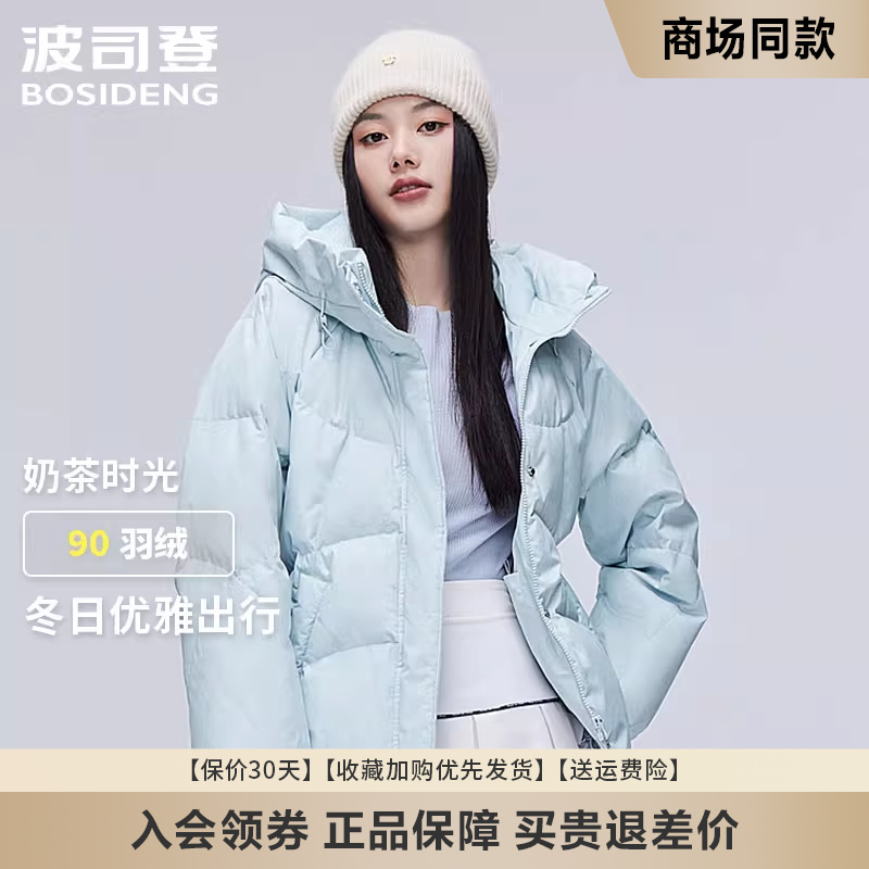 波司登25新款时尚休闲女士羽绒服爱心老花连帽短款显瘦小个子女生