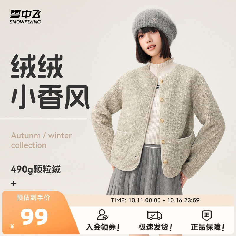 雪中飞2025秋季新款女士短款摇粒绒外套小香风上衣千金风气质开衫