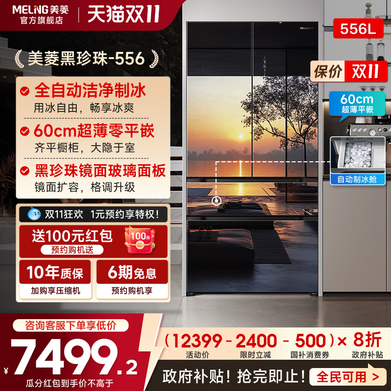【迷瞪直播间】美菱黑珍珠556L镜面零嵌超薄法式制冰冰箱一级家用