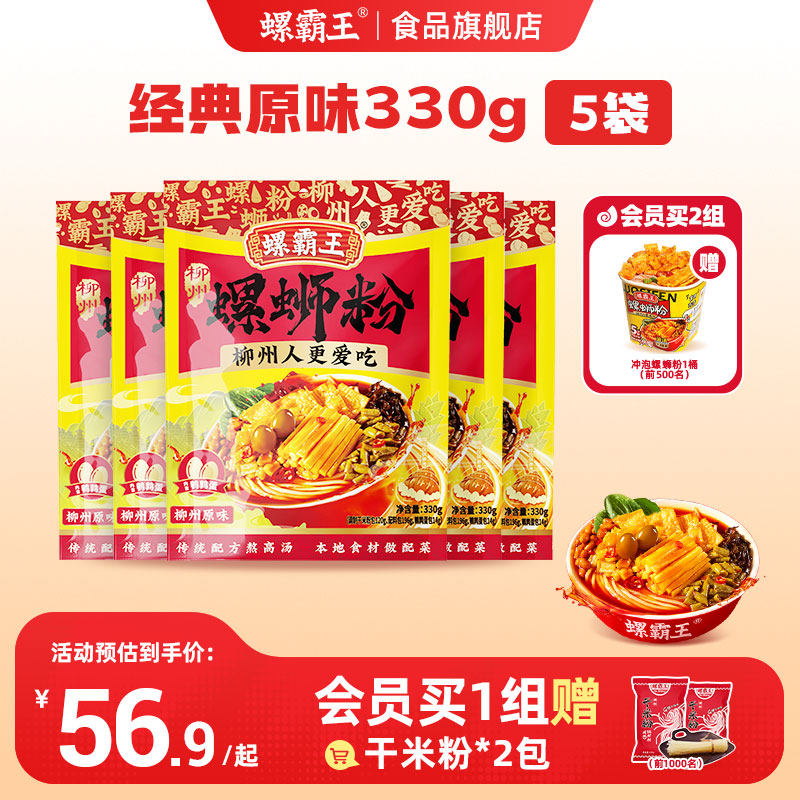【会员赠干米粉包】螺霸王螺蛳粉经典原味330g5袋螺狮粉速食