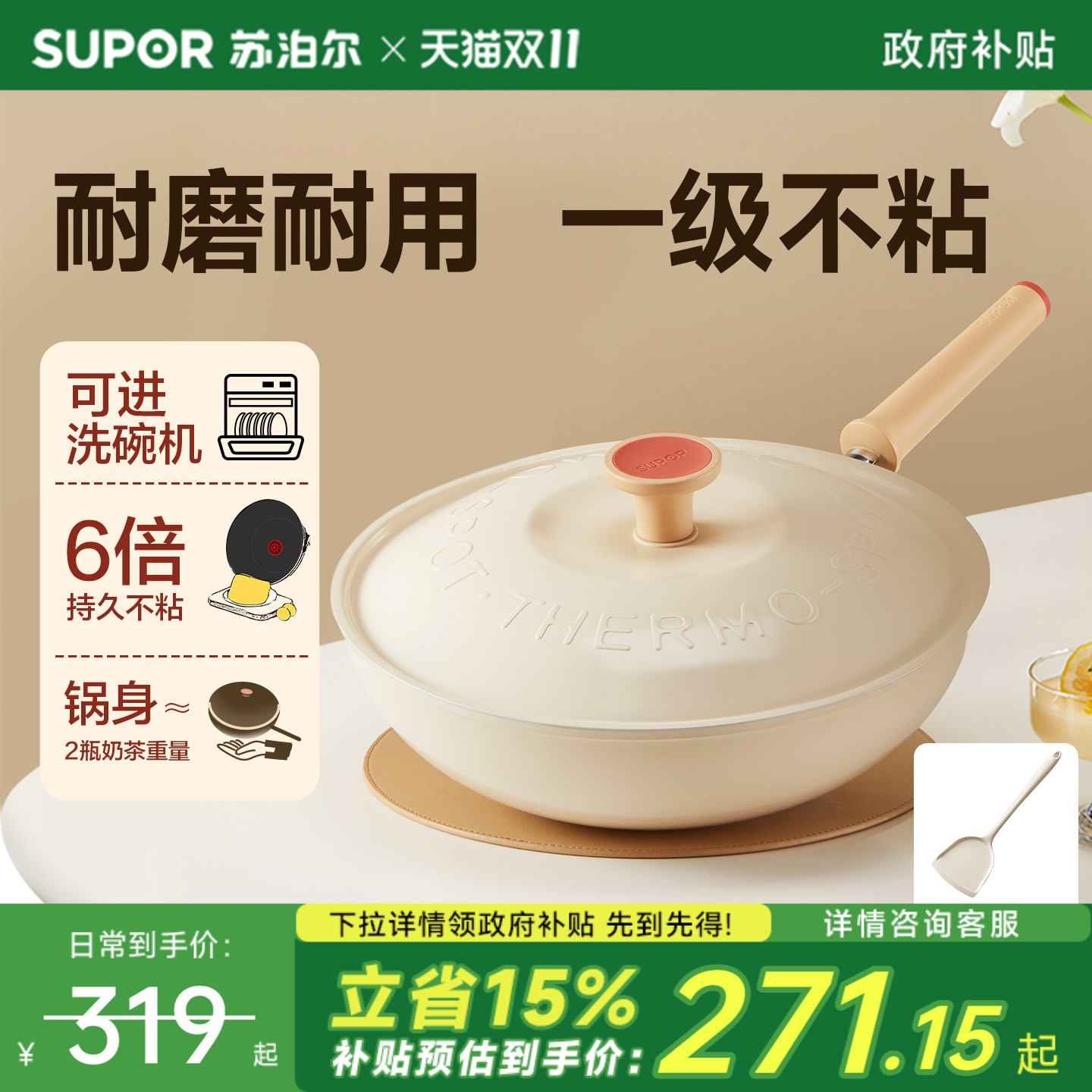 6倍持久耐磨不粘 轻量锅身 全锅可进洗碗