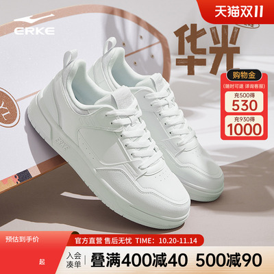 鸿星尔克白色黑色板鞋休闲鞋耐磨轻便