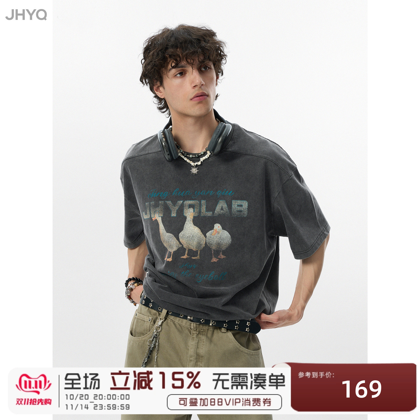 JHYQ 好运鸭印花305G水洗做旧短袖T恤