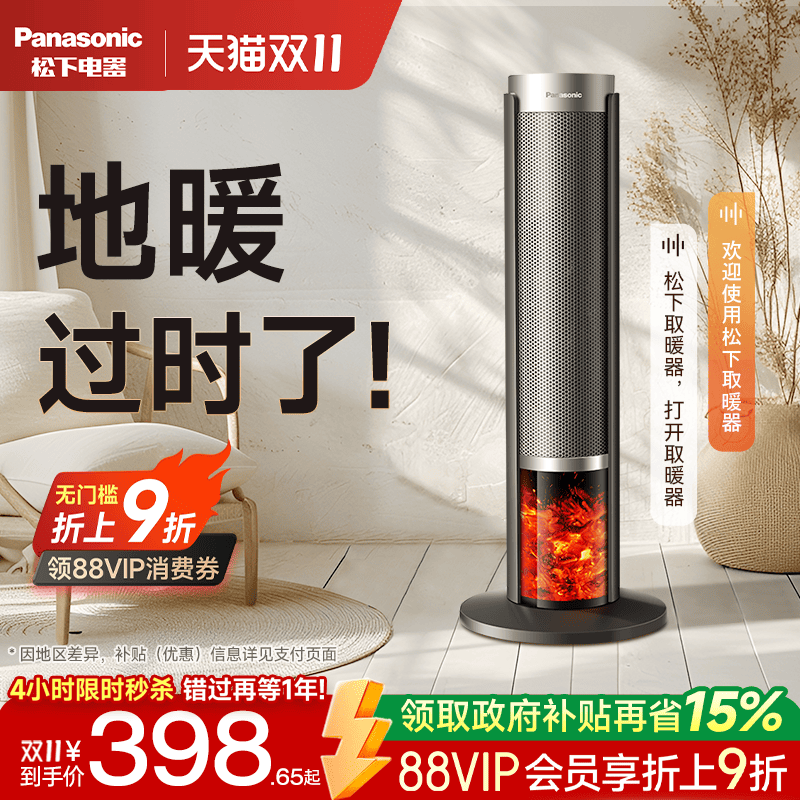 松下火焰暖风机家用石墨烯取暖器省电暖气炉小型浴室洗澡神器冬季