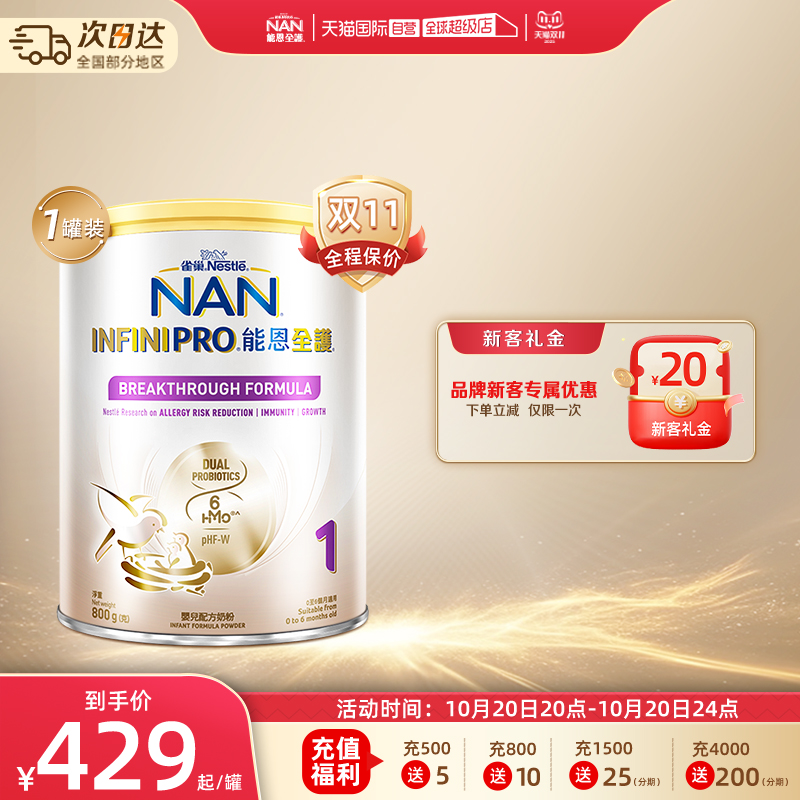 【自营】雀巢新能恩全护6HMO益生菌适度水解婴儿配方奶粉1段800g