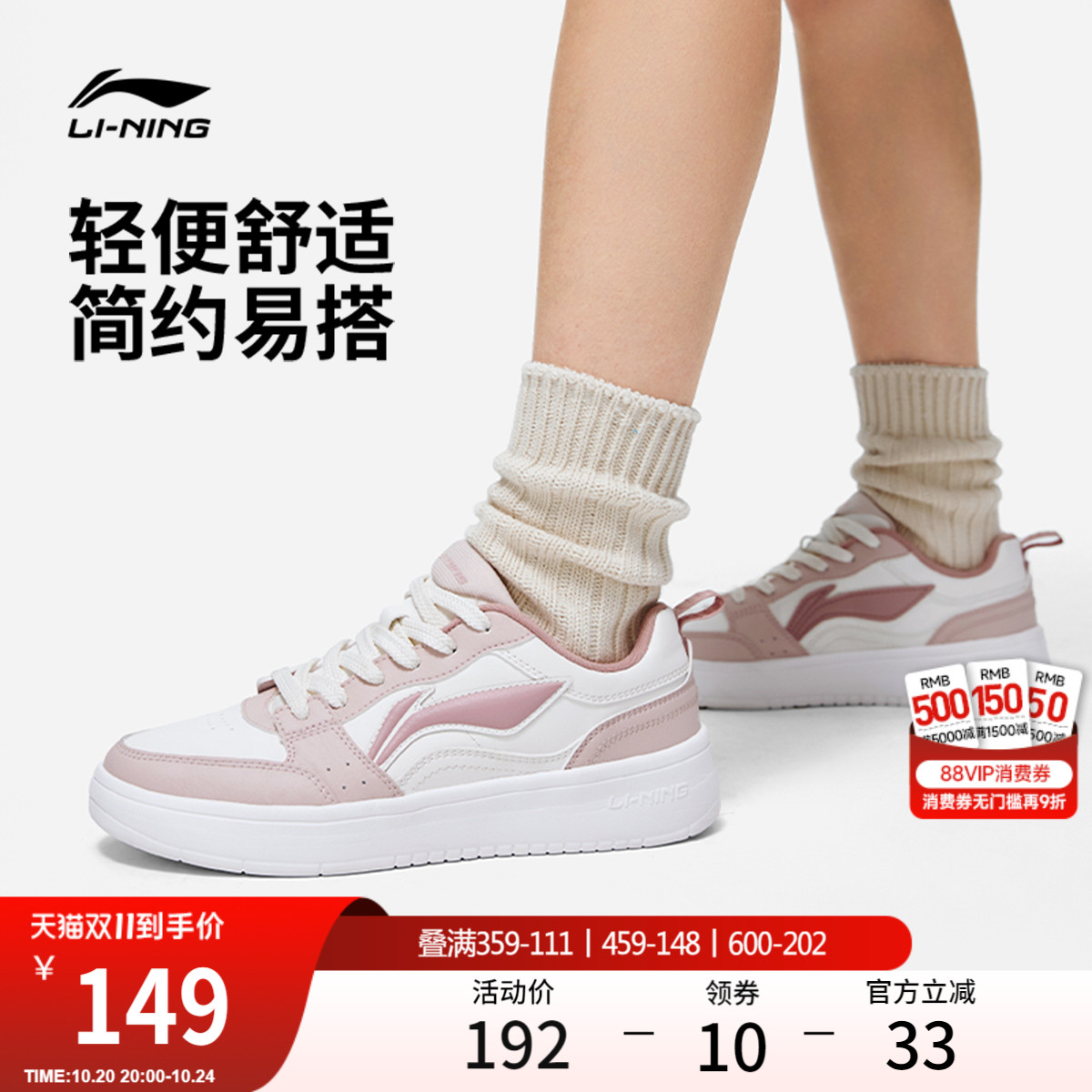 李宁元宝丨 板鞋女秋季透气休闲鞋经典舒适百搭小白鞋低帮运动鞋