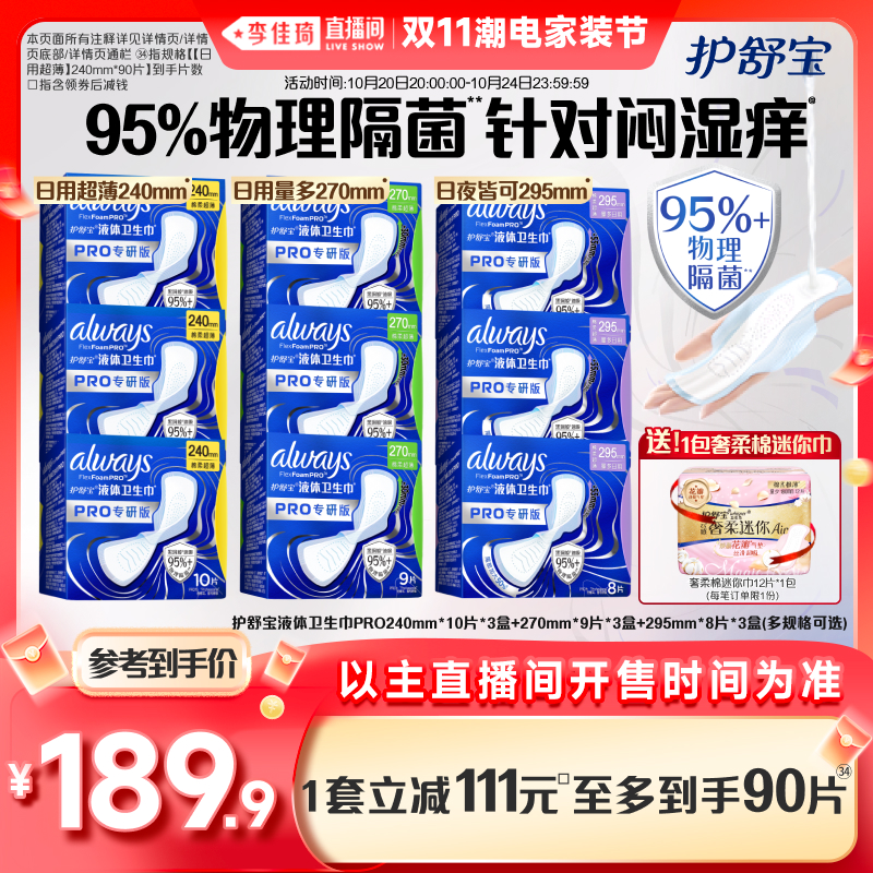 【李佳琦直播间潮电家装节】护舒宝物理隔菌液体卫生巾PRO姨妈巾