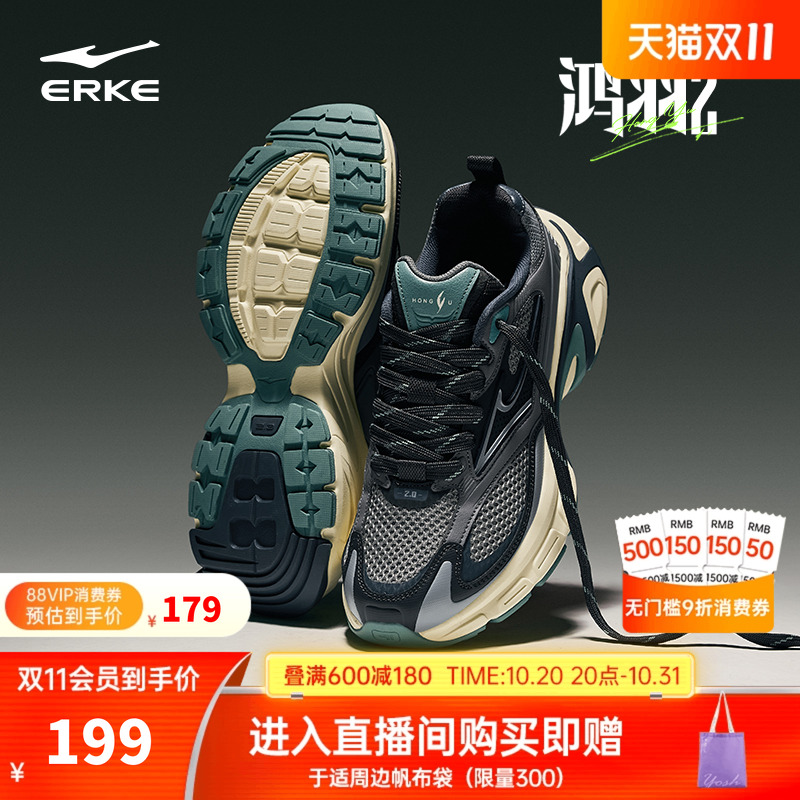 于适同款鸿羽2鸿星尔克男鞋休闲鞋秋季透气运动鞋复古千禧老爹鞋