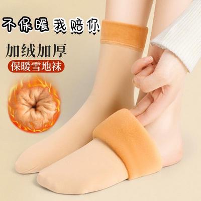 加绒袜子女中筒秋冬季加厚保暖雪地袜男袜短袜光腿神器地板袜女袜