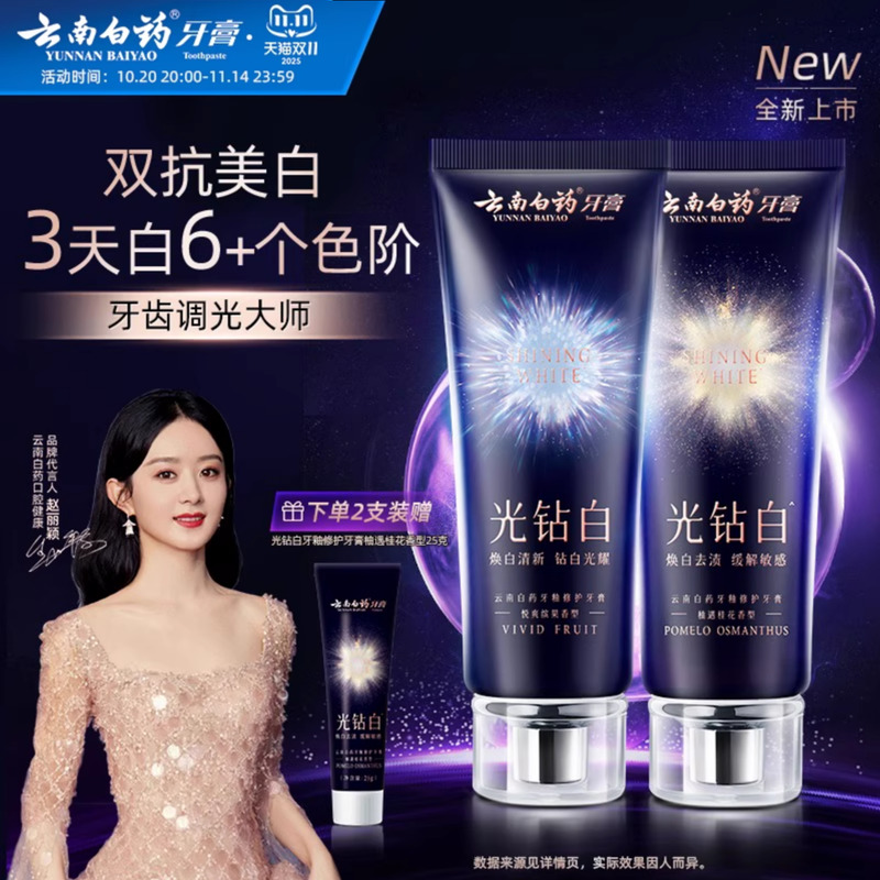 云南白药牙膏光钻白美白牙膏成人清新去渍亮白去黄修护官方正品