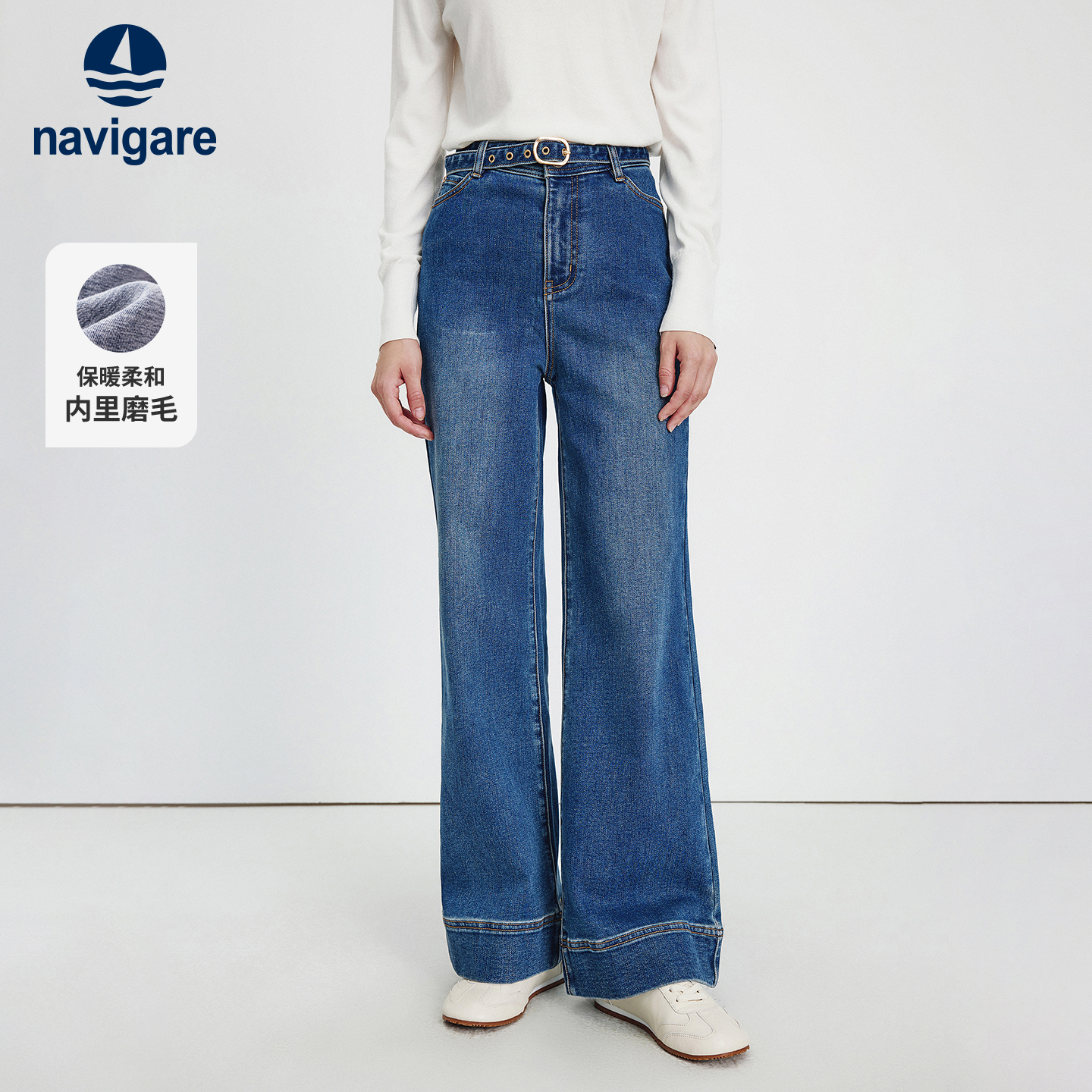 Navigare意大利小帆船休闲牛仔裤女25秋冬季新款加厚水洗磨毛长裤