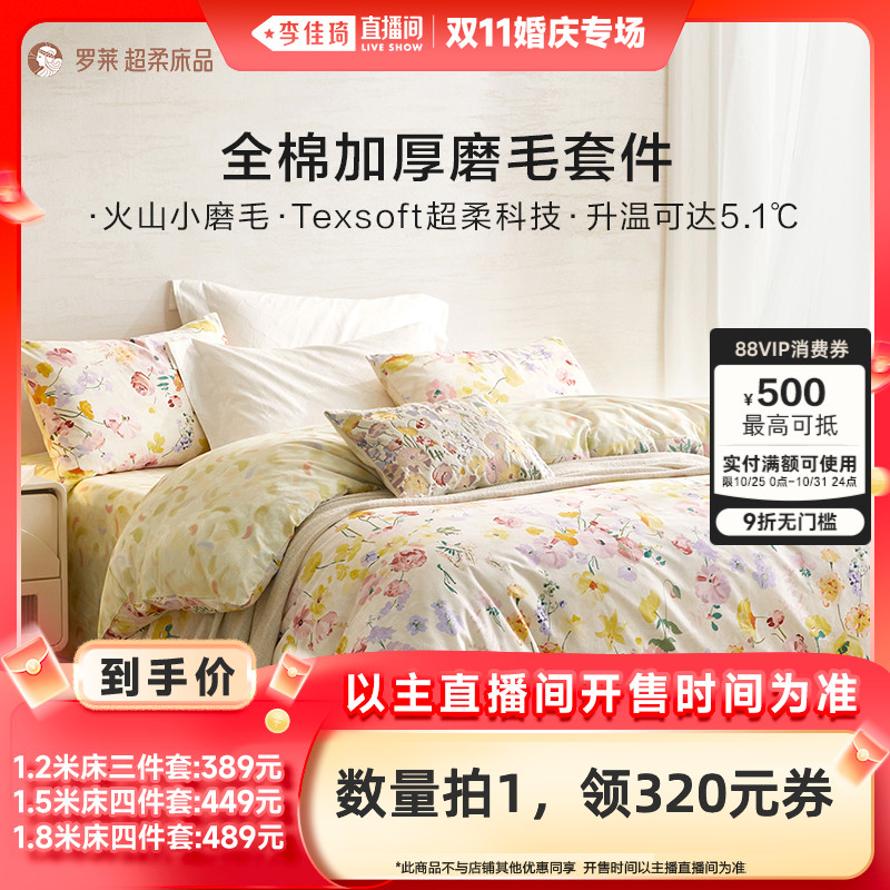 【李佳琦直播间婚庆专场】罗莱秋冬全棉纯棉磨毛保暖三四件套