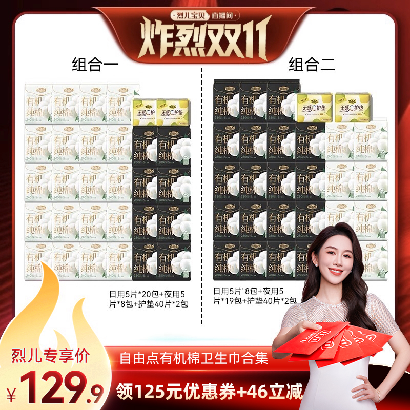 【烈儿炸烈双11】自由点新疆有机纯棉表层系列卫生巾日夜zb