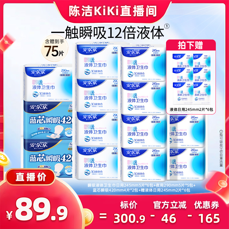 【抢现货!k姐双11】安尔乐瞬吸液体卫生巾姨妈巾日夜组含赠75片