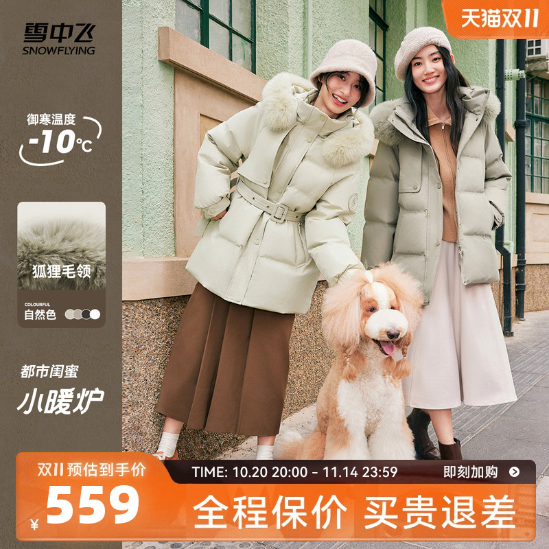 【小暖炉】雪中飞2025冬新款女士狐狸毛领设计感活页中长羽绒服女