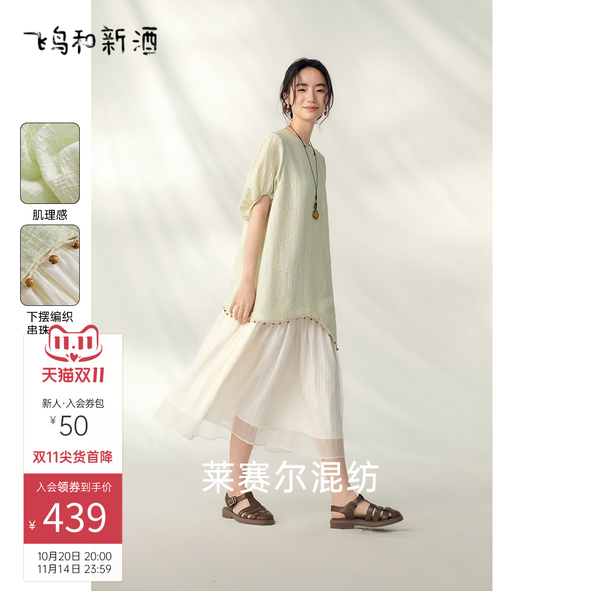 【莱赛尔】飞鸟和新酒2025夏新款中长款显瘦肌理感天丝短袖连衣裙
