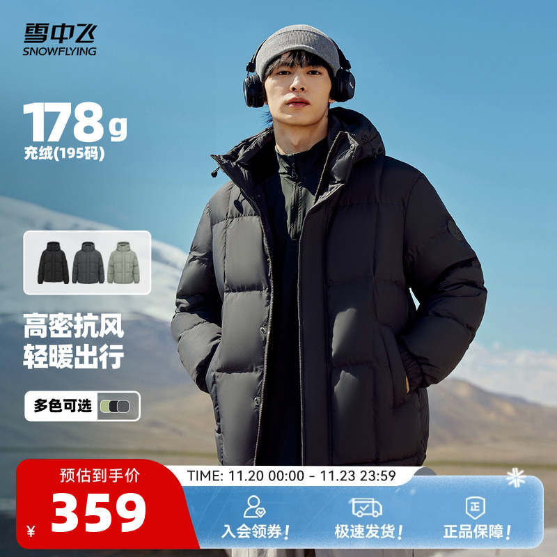 雪中飞2025冬新款男士短款连帽羽绒服商务休闲时尚加厚保暖抗寒