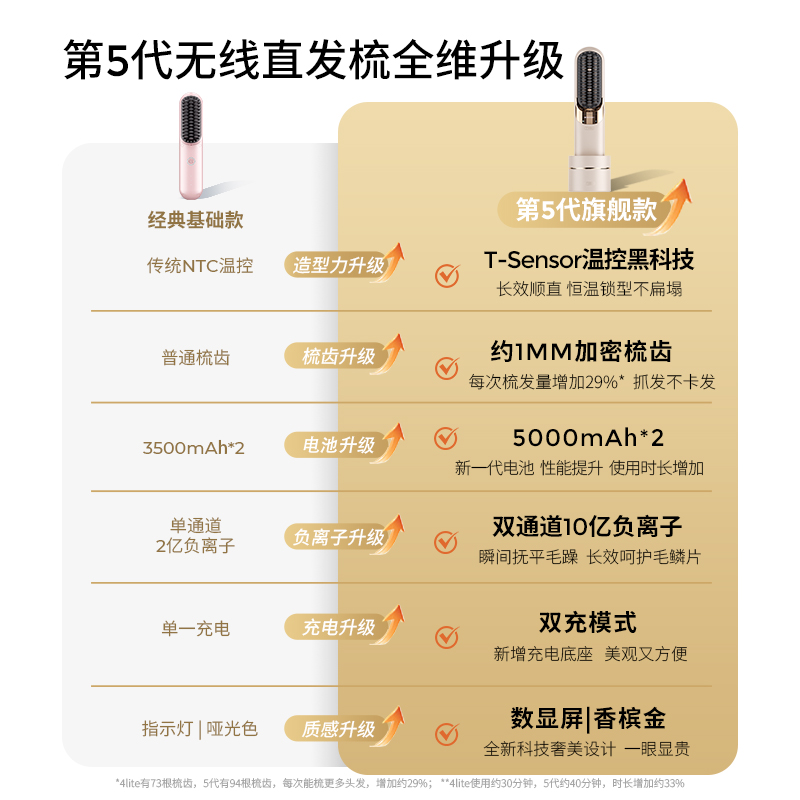 TYMO第5代无线直发梳夹板高颅顶卷发长续航负离子不伤发温控拉直