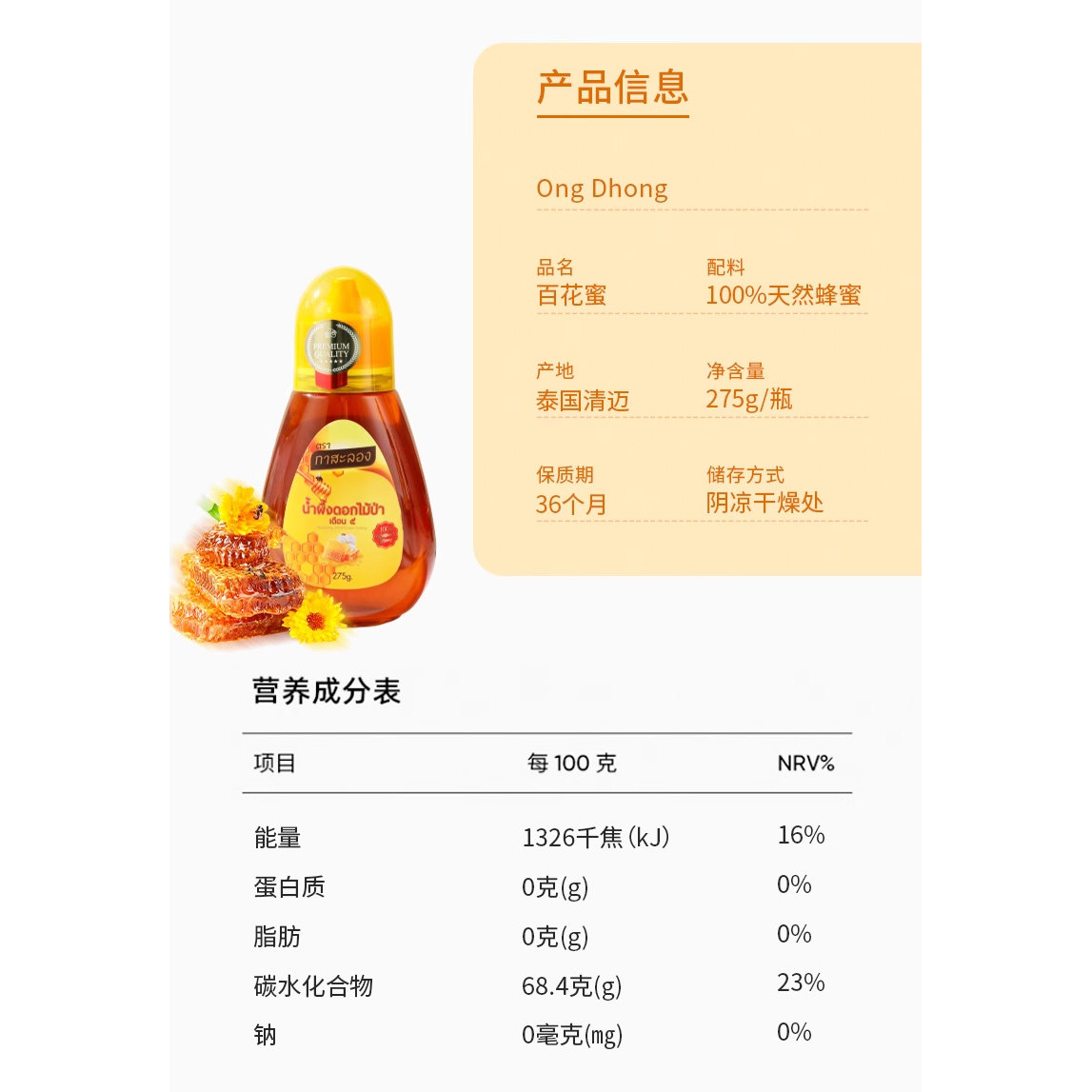 OngDhong泰国蜂蜜礼品礼物百花蜜挤压蜂蜜龙眼蜜儿童孕妇买一送一