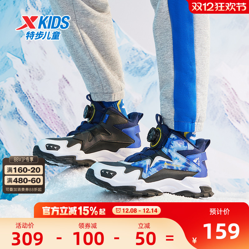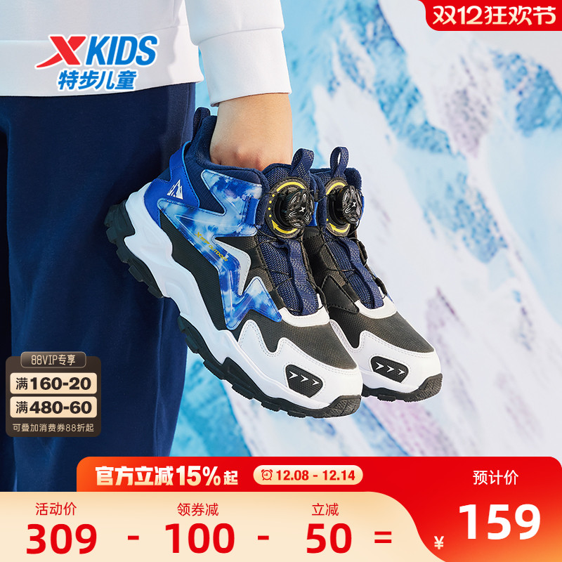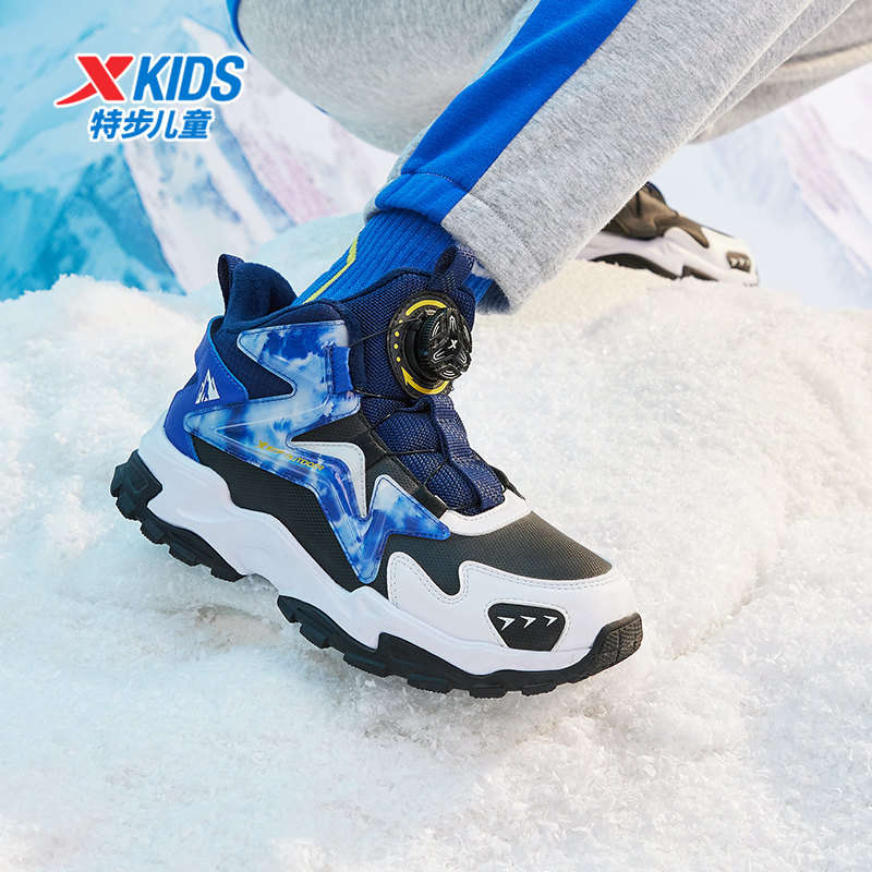 特步童鞋秋冬新款儿童保暖棉鞋男童高帮旋转扣运动鞋大童加绒鞋子