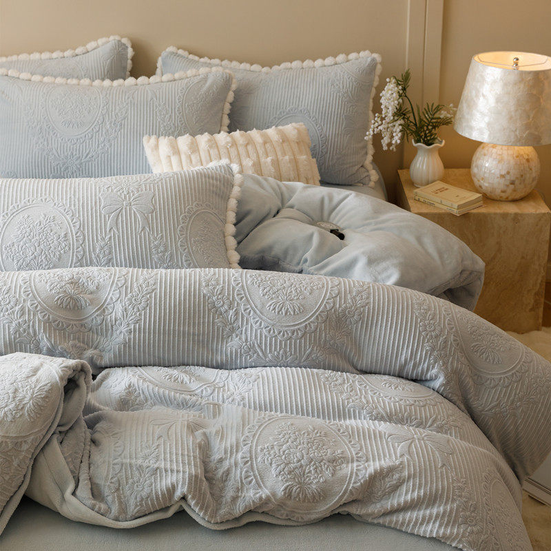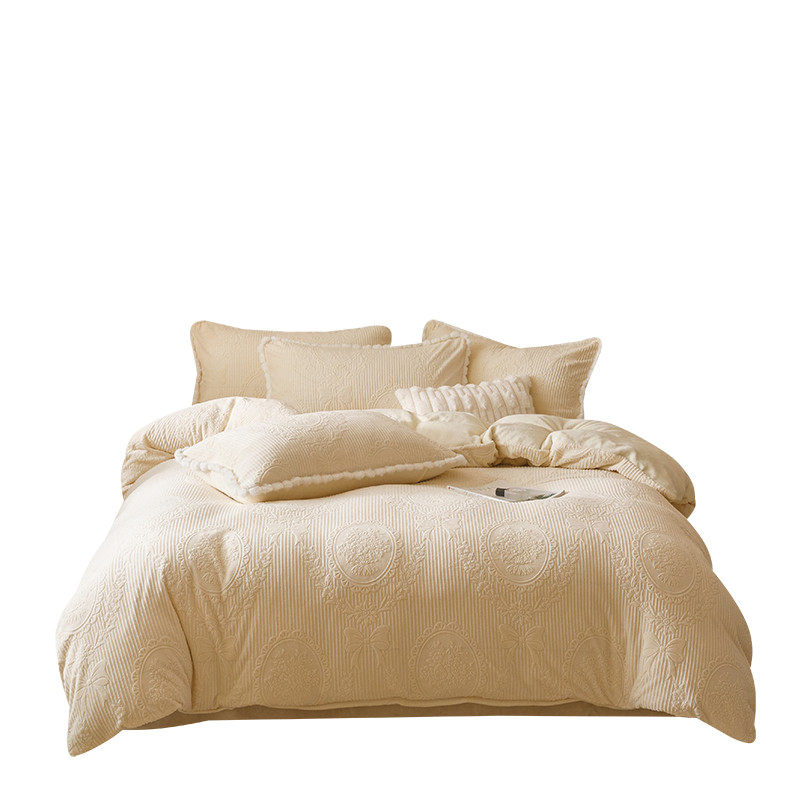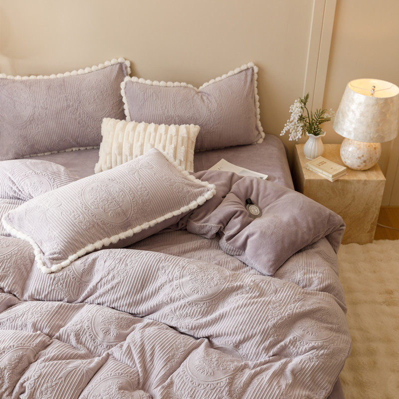 冬日温暖~提花牛奶绒四件套加厚保暖立体毛绒纯色简约2.0床品