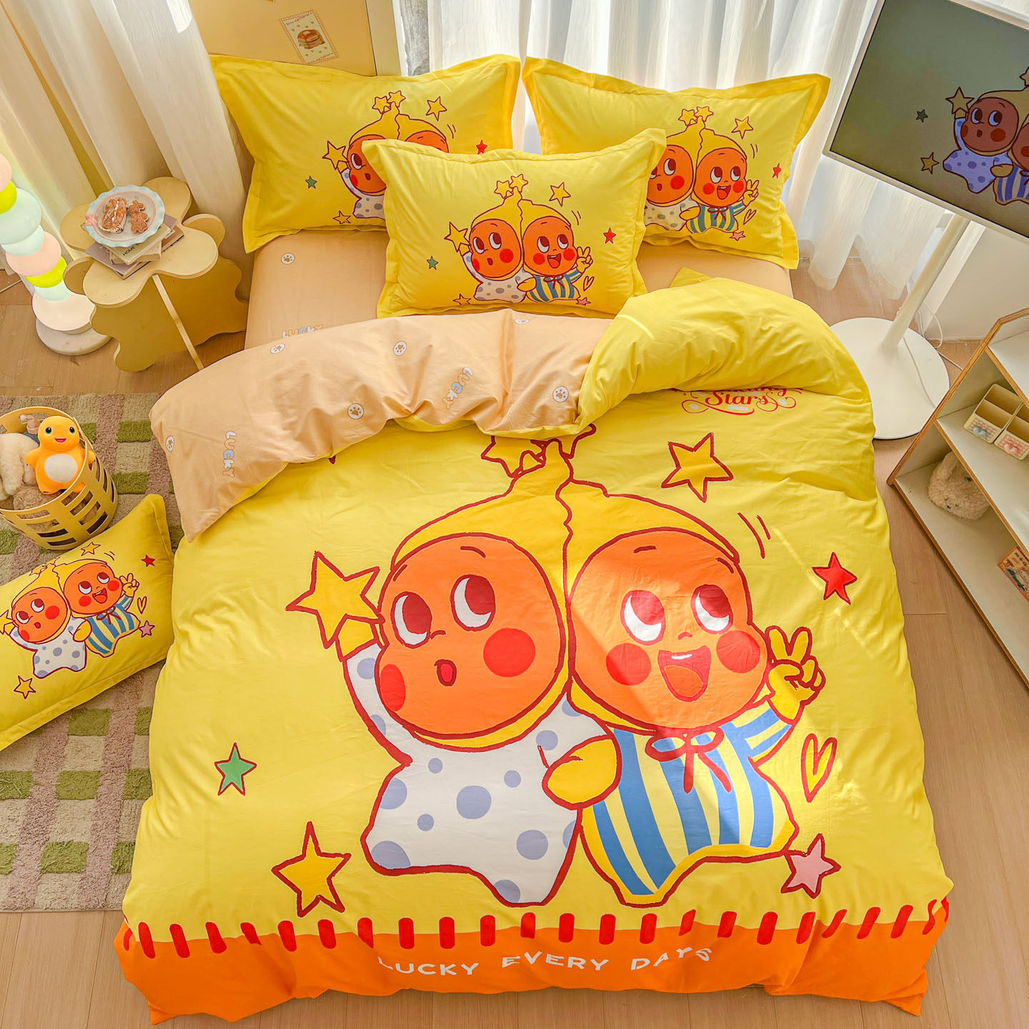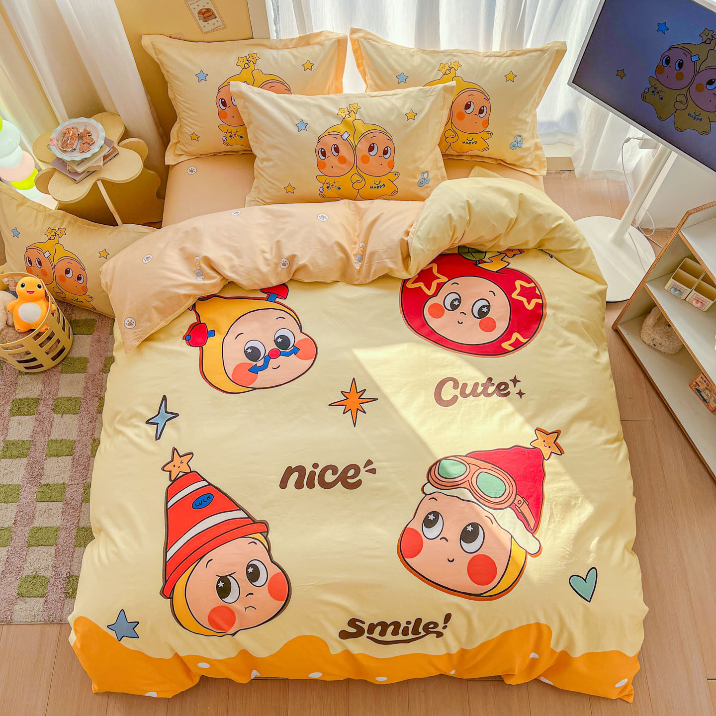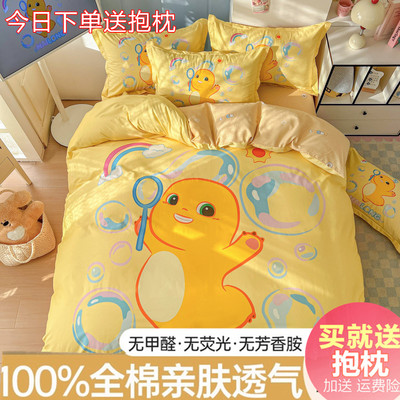 卡通奶龙纯棉四件套100全棉儿童可爱被套学生宿舍4三件套床单笠品